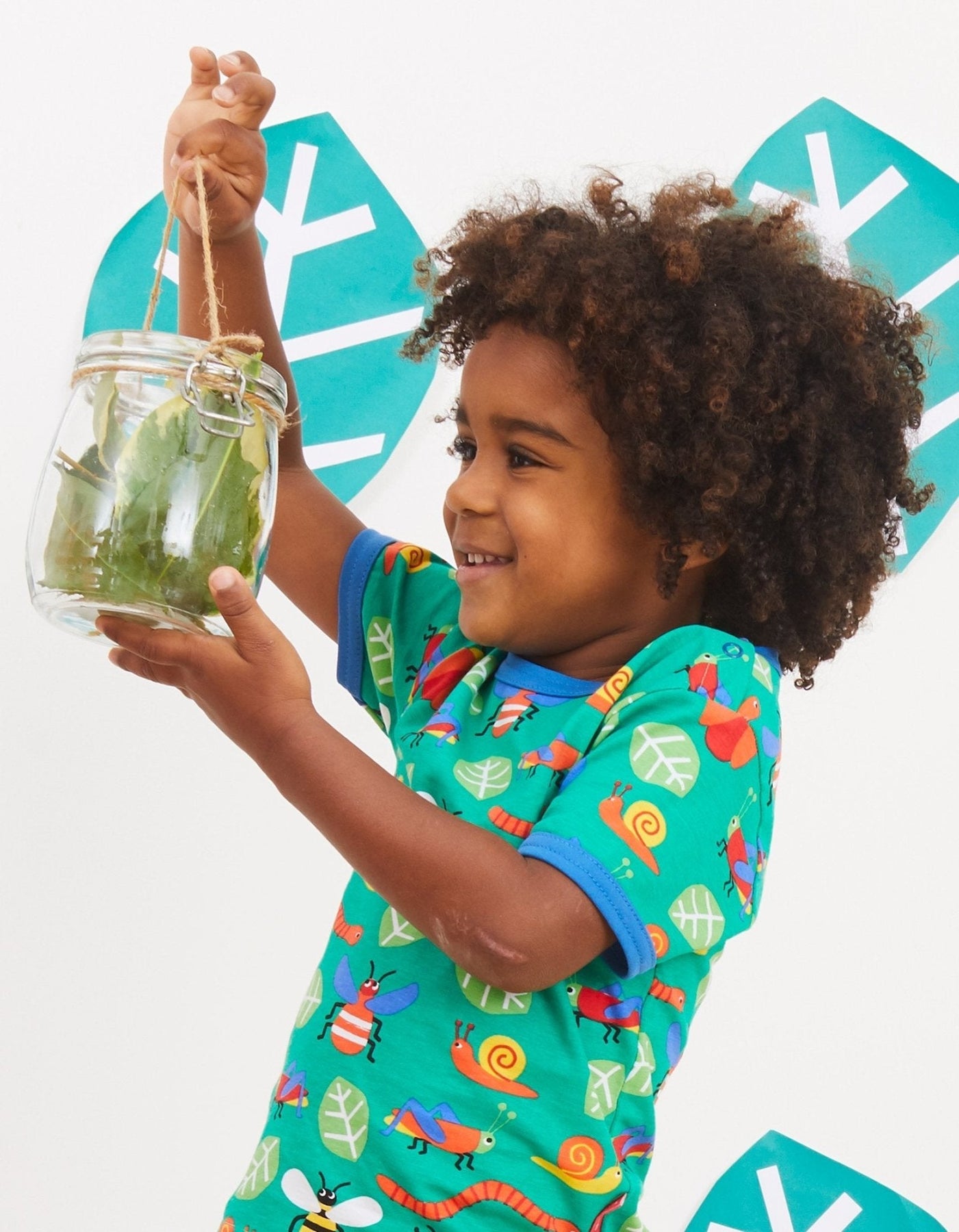 Embrace a bug's life as we pay homage to our favourite insects. Buzzy bees, wriggly worms, swirly snails and more feature on our grass-green organic cotton colourful kids T-shirt. Our smaller sizes come with poppers on the neck to make changing that little bit easier.